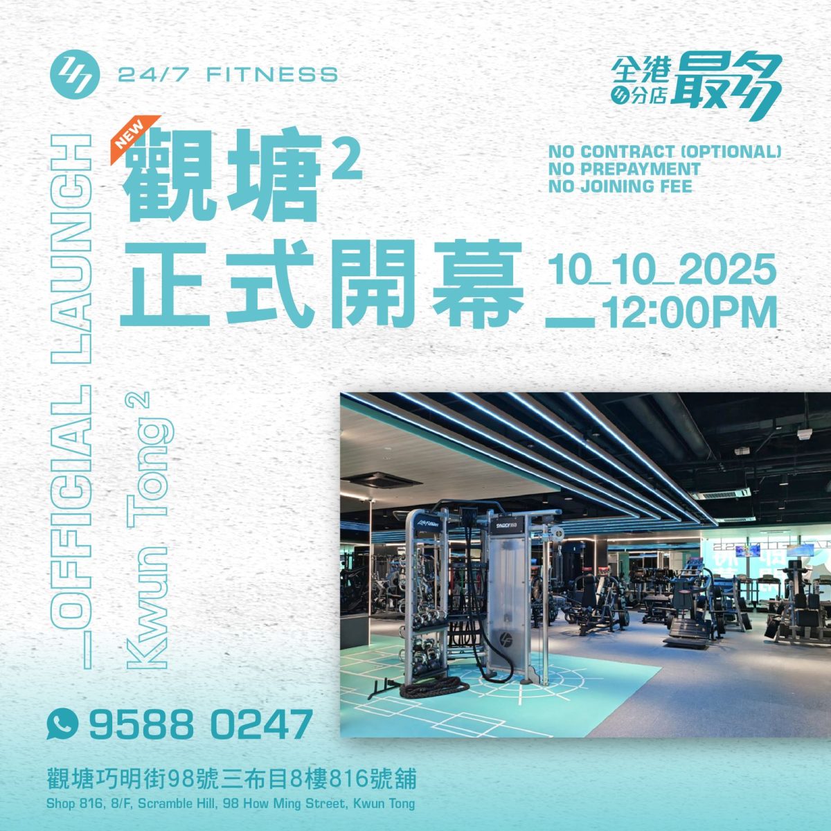 24/7 FITNESS 观塘第二分店将于10月10日正式开幕!