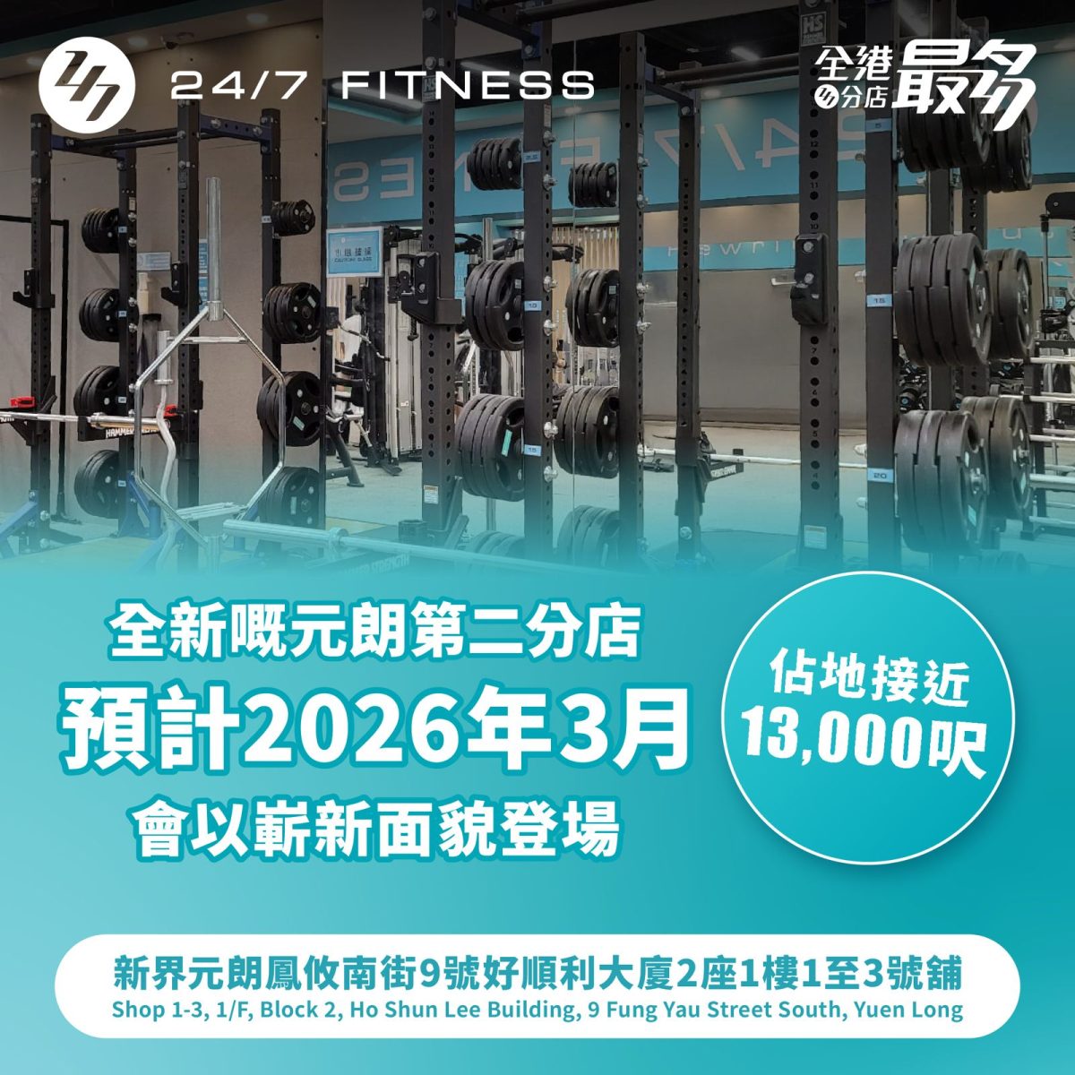 Brand-New Look — 24/7 FITNESS Yuen Long Second Branch Coming Soon