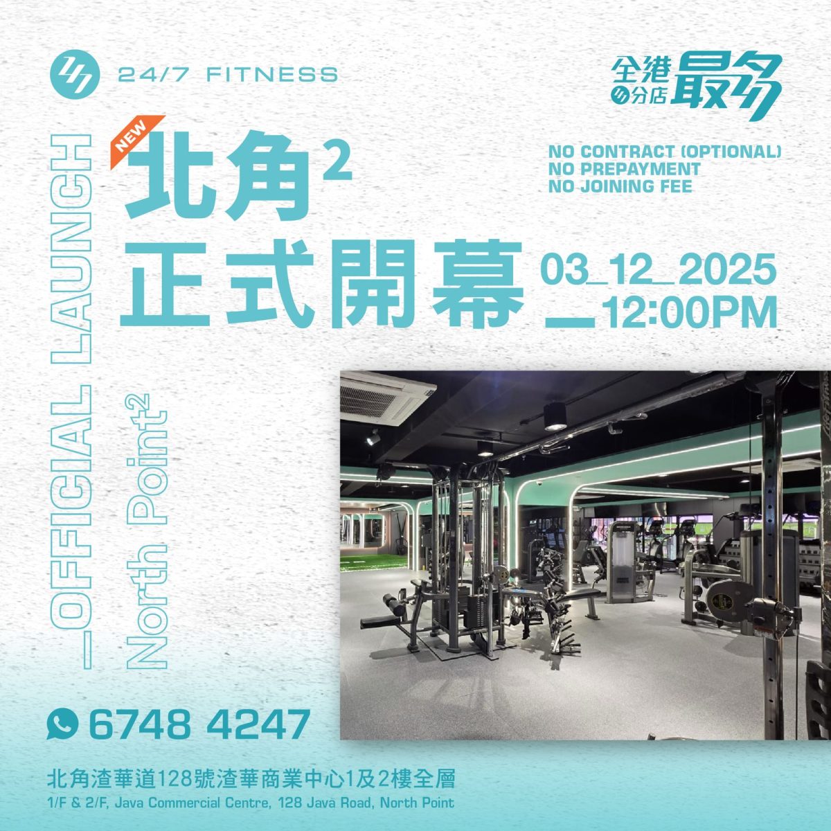 24/7 FITNESS北角第二分店今日正式開始運作,為大家提供多一個方便、可靠的健身選擇。