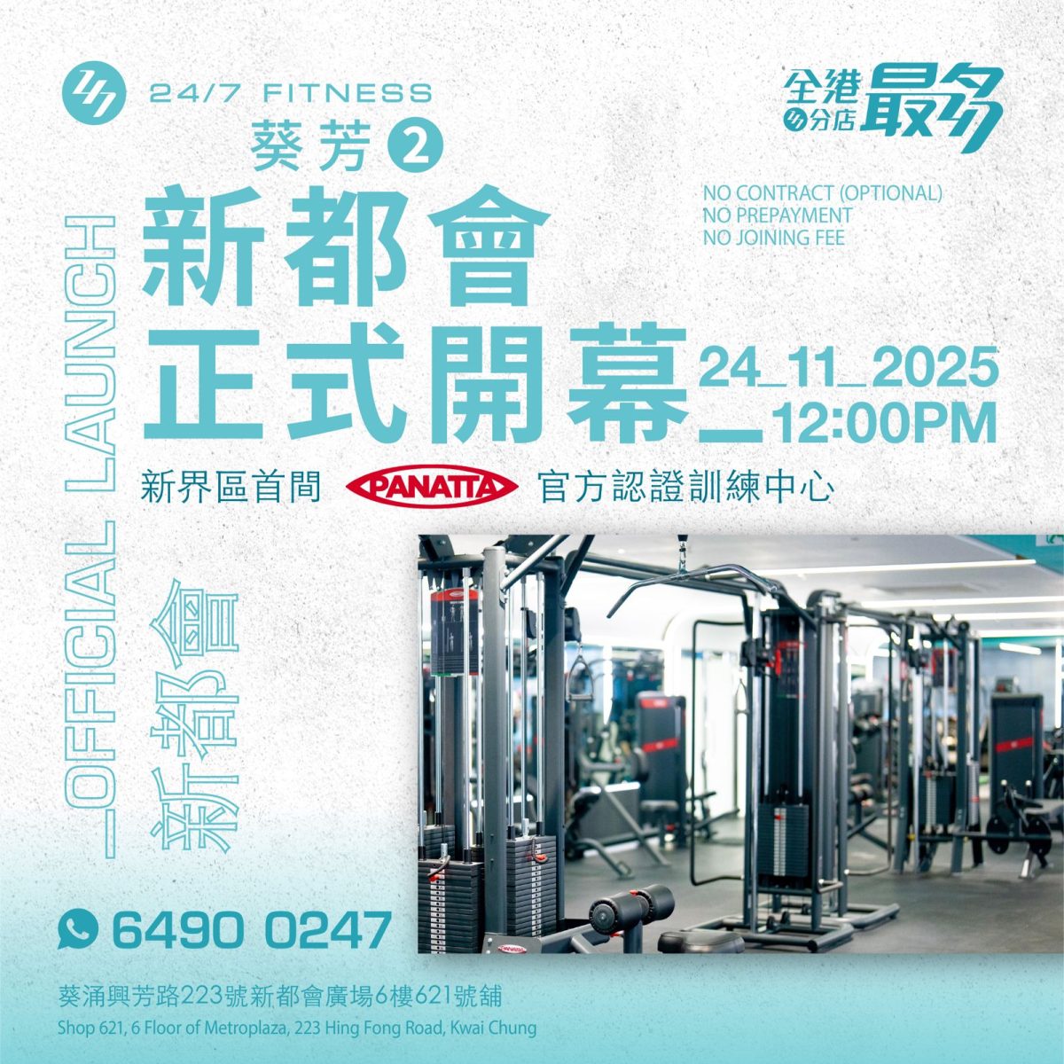 24/7 FITNESS葵芳第二分店 (新都會廣場) 11月24日正式開幕!大家行開葵芳,記住嚟探下我哋!